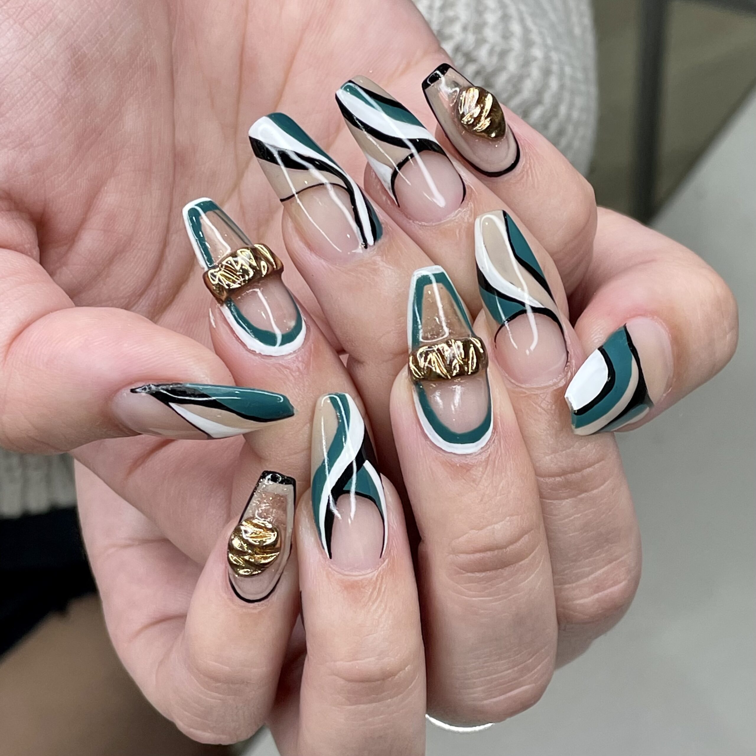 完成 after写真 長さをだして、今年大人気のリングネイル✖︎プッチ⬇️⬇️⬇️クリアスカルプと大きめジュエリーを組み合わせました♪♪🎶 形は究極のバレリーナカットスタイル✨
