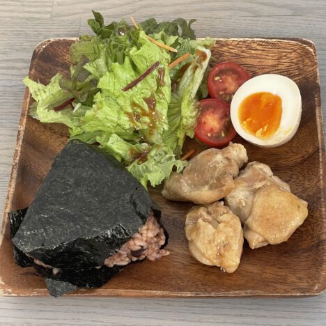 palette caféでは8月限定のキッズプレートワンコインをやっております。 小学生以下のお子様に限り、発酵鶏照り焼き&おむすびセットがドリンク付きで500円✨
