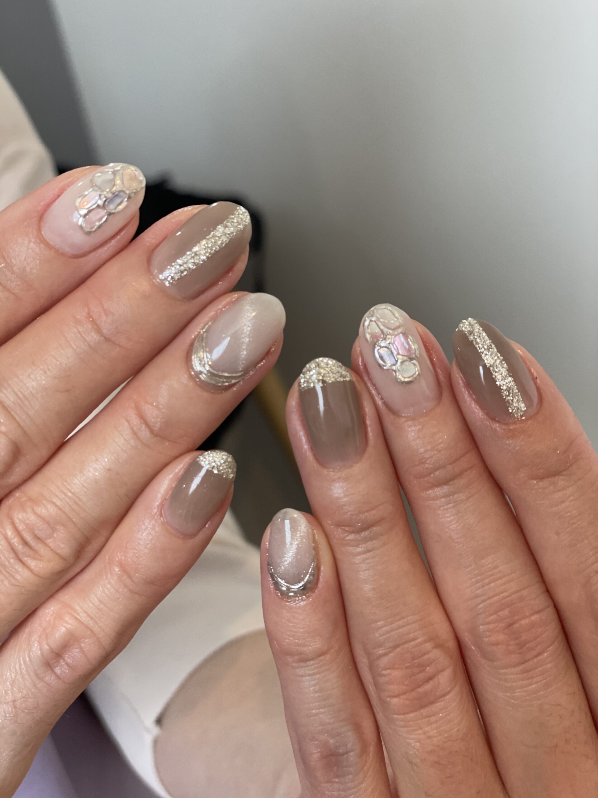 今日のオススメネイルはシェルパーツをジュエリーで囲んだ豪華なネイルです。指先から生まれる心の安らぎ❤️