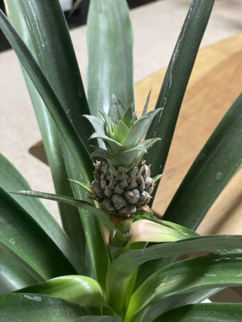 3月末に花芽が現れたパイナップルちゃん。 今日まで1ヶ月半でここまで大きくなりました✨ 可愛い〜(๑♡∀♡๑)