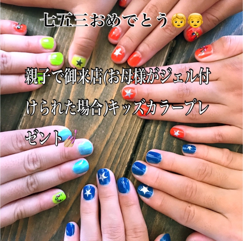 親子で来店で(お母様がジェルやって頂いた場合)お子様カラープレゼント✨