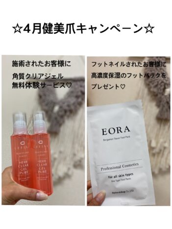 🟣フットジェルやって頂いた方EORAパックプレゼント